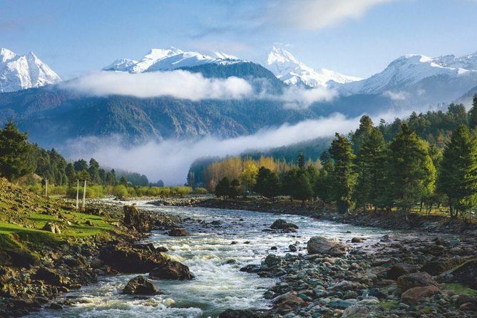 Pahalgam offers lush green valleys, pine forests, flowing rivers, and a peaceful hill-station environment.